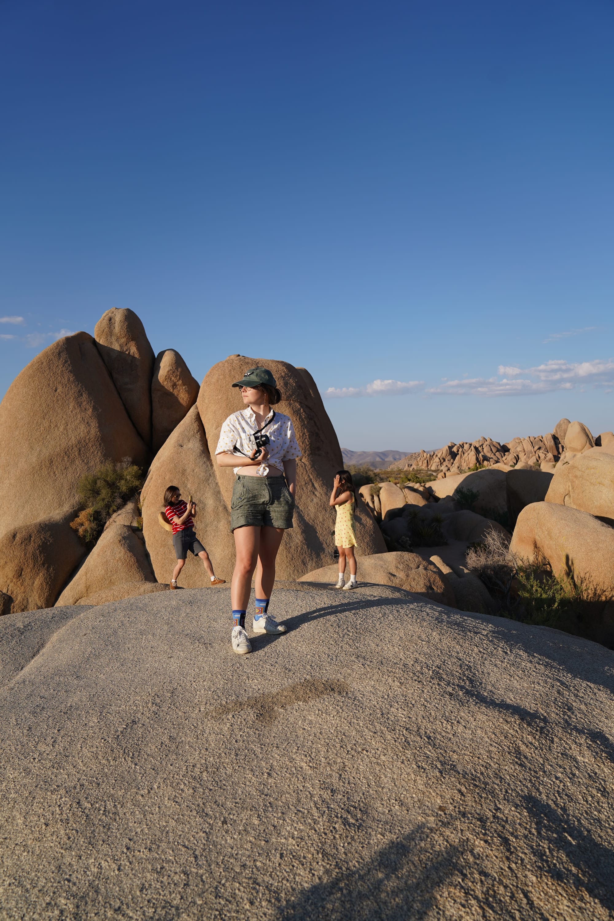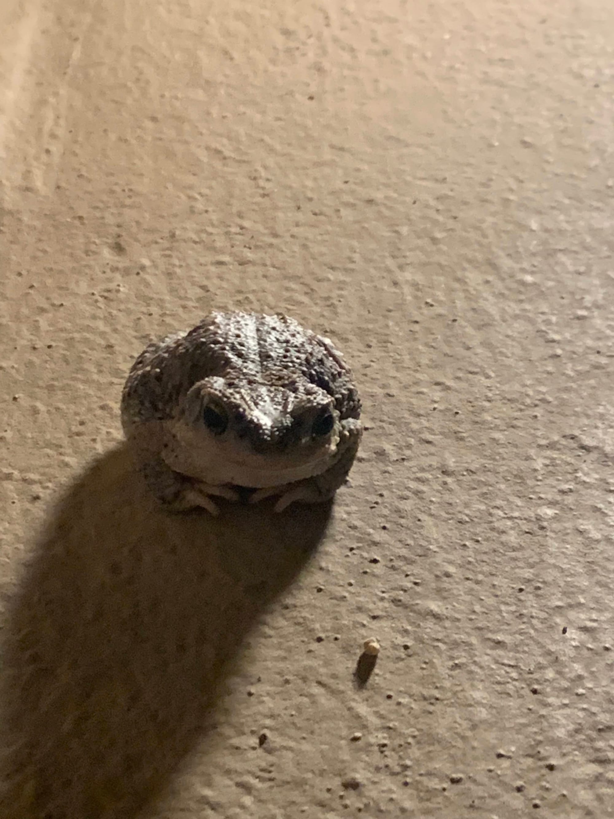 There are no bats in the air, like the lesser long-nosed bats that emerged into the Joshua Tree sunset like chaotic freckles on the sky, but there is a desert tarantula, crossing in front of me unexpectedly and calmly. It’s almost as big as my foot, is so fuzzy and substantial in size it doesn’t even feel like it should be called a spider. I am delighted, find it beautiful. There are also red-spotted toads on the stairs near the pool, which sit placidly and politely even as their photos are taken.