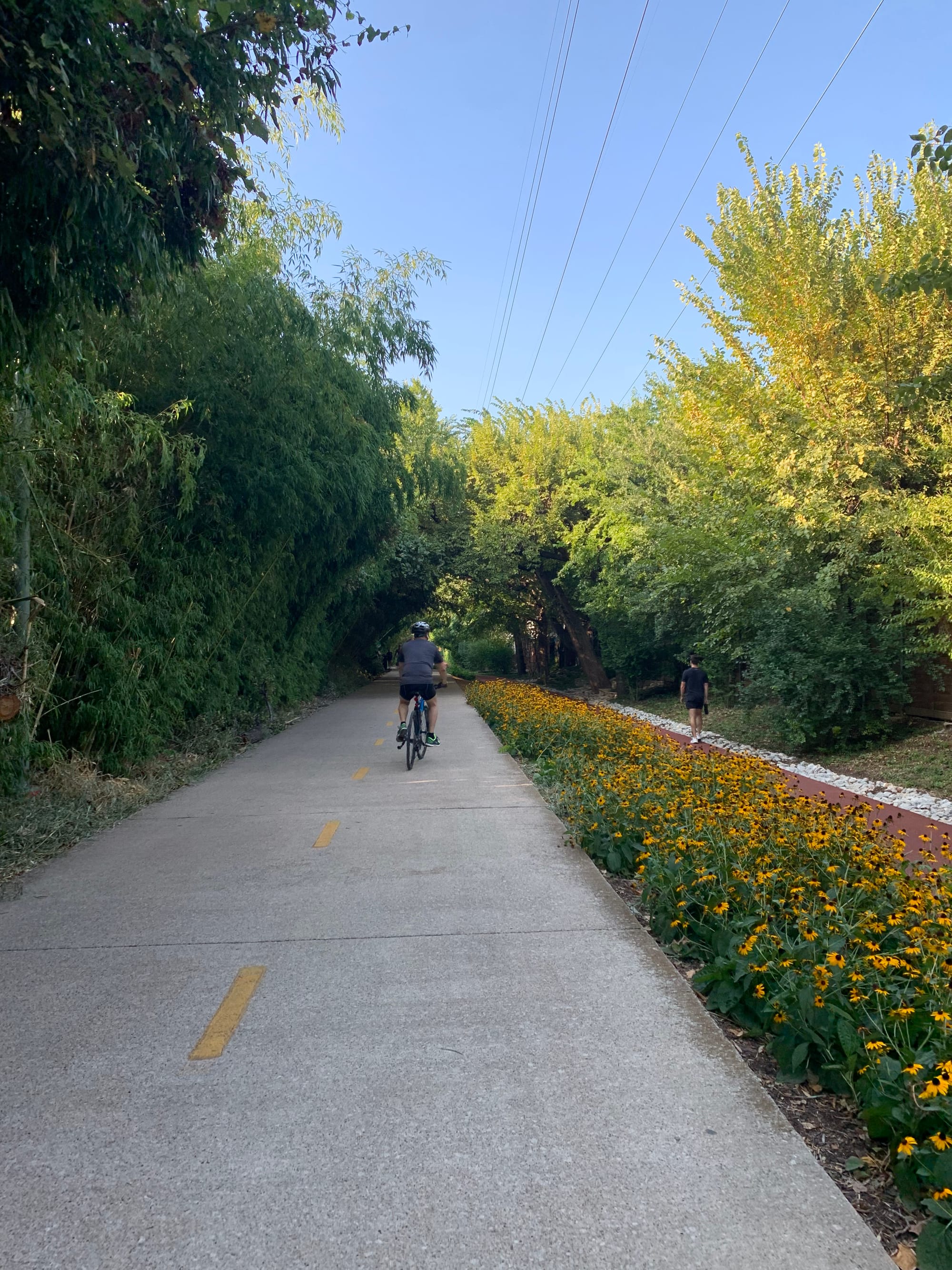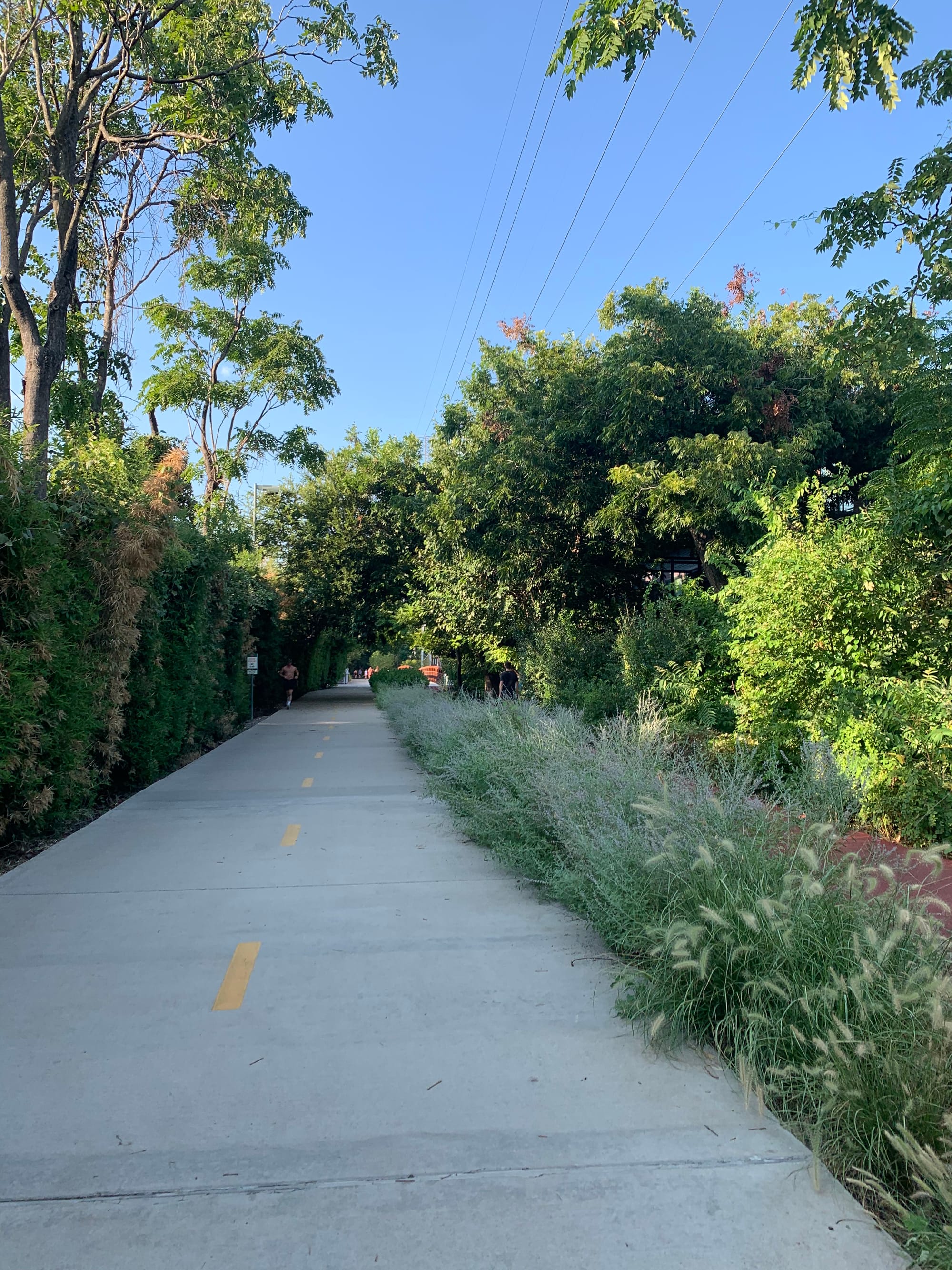 So, we spent a night in El Paso and a night in Dallas, sprinting from one city to the next. In El Paso we achieved nothing more than sleep, but at least in Dallas we were able to experience takeout (a recently opened Wagamamas, the London-origin Asian food restaurant), a local café for breakfast, and the Katy Trail, a pedestrian and bicycle trail that follows the path of an old rail line. The Trail is surrounded on either side in downtown Dallas by a thick wall of trees, bamboo, and apartment buildings, with swaths of native plants maintained in between the pedestrian-only and the multi-use path. A colony of monk parakeets—a species native to South America—have also made some electrical towers beside the Trail their home. These naturalized parakeets of mysterious origin keep warm in the cold Dallas winters by utilizing the heat the towers generate. They are soft green and cream-colored, and very talkative.