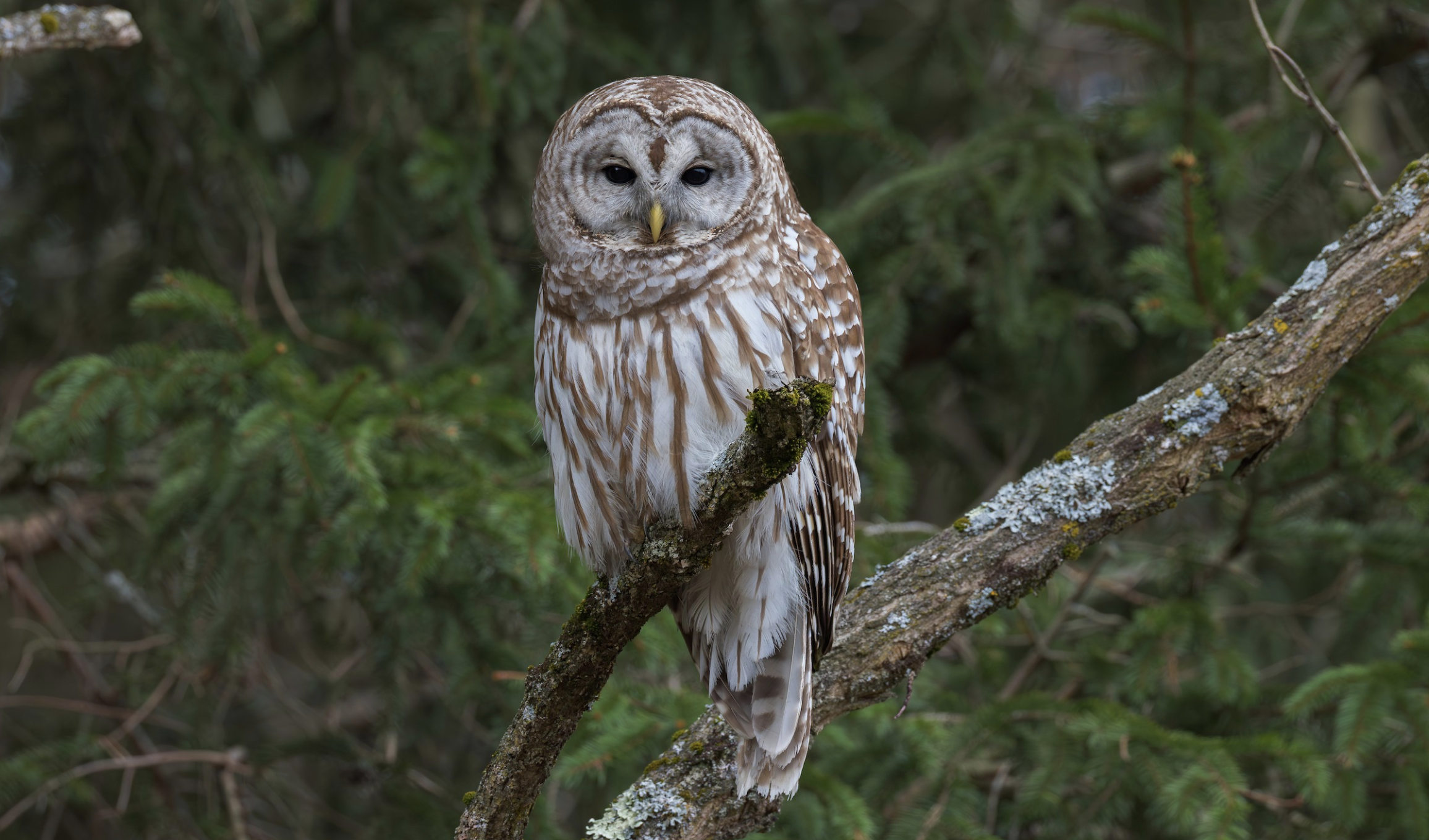 I love Dasha and I love Madison and I love Dasha (the second Dasha). The second Dasha and the first Dasha (in any order, I love them) and the only Madison, the one who taught me about northern parulas. I love northern parulas, their small bodies, their grey and yellow plumage, their buzzy trill; the first parula trill I’ve heard in 2025 I heard today right when I finished jogging at the park, in the parking lot, the park where I also heard the frog that predicted the storm, the park where I saw a barred owl kill something and then take a nap, last week. I love barred owls also, if we’re talking about birds—love their facial discs full of tiny innumerable feathers arranged like layer upon layer of flaky soft shale or like complicated sheafs of cake icing, creamy grey and white and brown icing. Here is a photo: